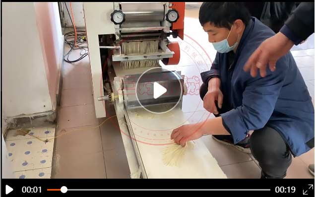通過拌面機拌好的面絮,放入面條機內,通過多組壓面軸,連續壓面成面片進入刀口,生產出不同規格的面條,圓面條,扁面條,方型面條,菱形面條,刀削面,方形面片等。